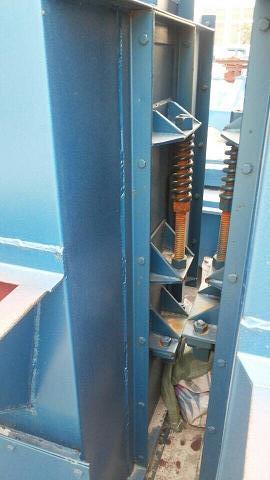 提升機由于用中央鏈代替鋼絲膠帶,必須考慮原尾輪中心線至機殼底部的距離是否滿足要求,避免料斗刮底。經核算后,將尾部側板向上加高200mm以滿足料斗順利通過提升機尾部。同時兼顧尾部入料口與尾輪中心線的最小距離1500mm,保證物料在尾部的流入式喂料,降低料斗的磨損。