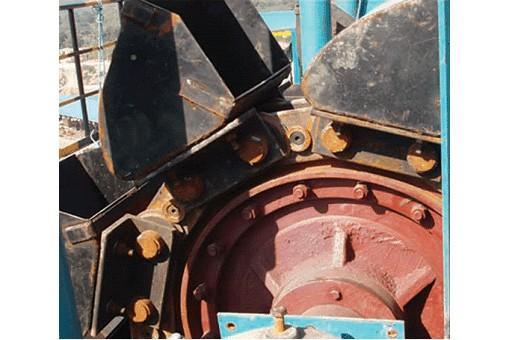 4、提升機料斗在底部隨著尾輪旋轉而向上旋轉挖取物料,在挖取過程中處于底部的糧堆受到畚斗的擠壓,產生擠壓破碎。當料斗裝滿物料繼續旋轉運行時,料斗外的物料與畚斗、機尾斜導流板發生摩擦,產生摩擦破碎。